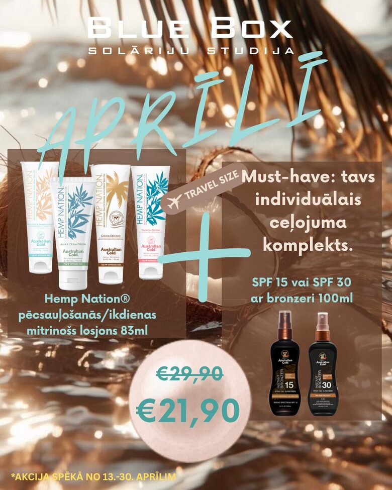 Blue Box studijās pieejams plašs piedāvājums ādas aizsardzībai saulē.