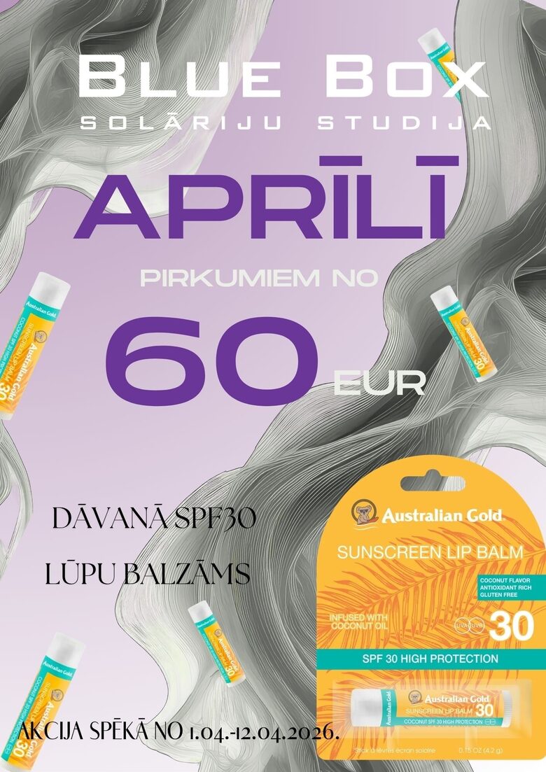 Iepērcies sākot no 60 eiro un saņem dāvanā SPF30 lūpu balzāmu – jo rūpes par sevi sākas ar detaļām.