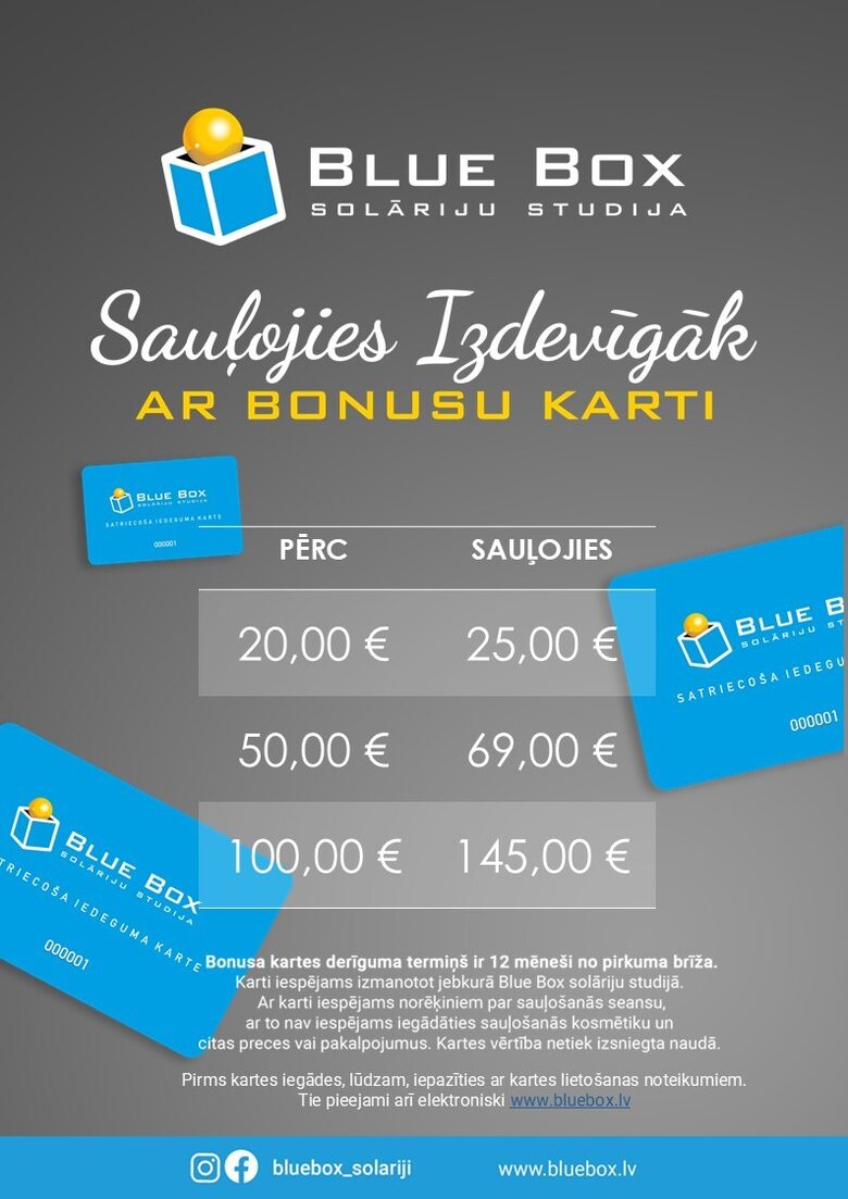 * akcijā piedalās Blue Box studijas: Blue Box Pērnavas, Ziepniekkalnā, Imantā, Ogrē, Tukumā, Valmierā, Ķekava, Jēkabpils(Vecpilsētas laukums)