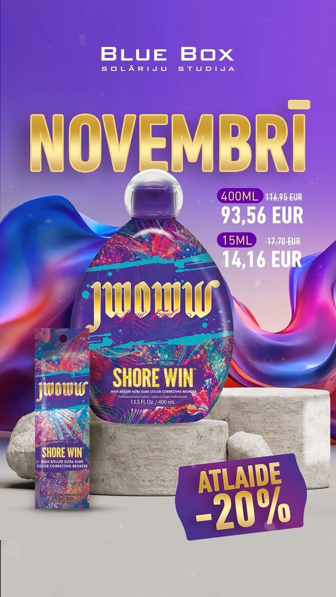 Novembrī 20% atlaide izcilajam JWOWW Shore Win sauļošanās losjonam!